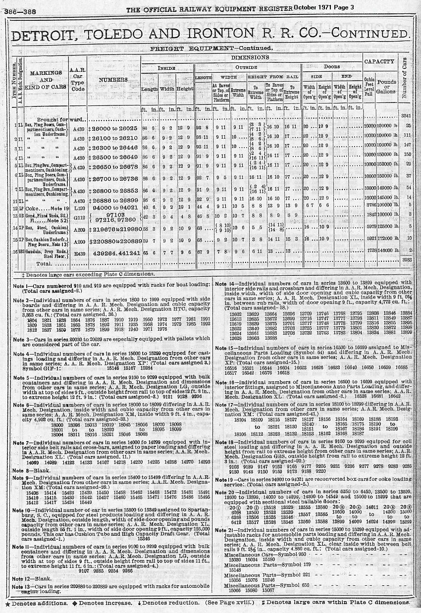 ORER Listing for October 1971 Page 3 ORER info courtesy Mark Plank