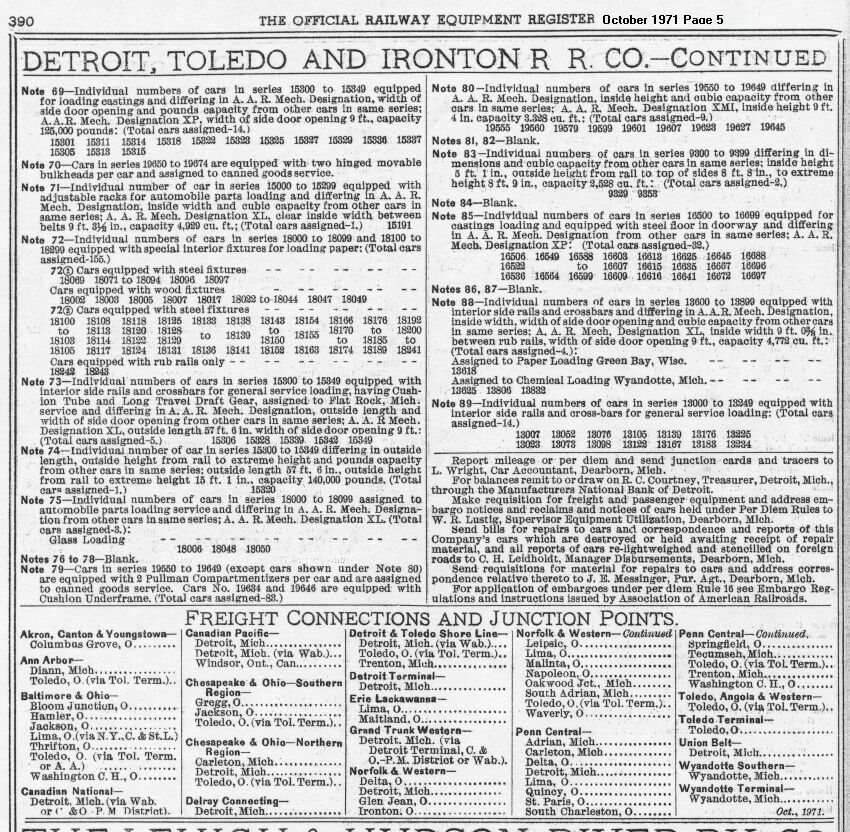 ORER Listing for October 1971 Page 5 ORER info courtesy Mark Plank