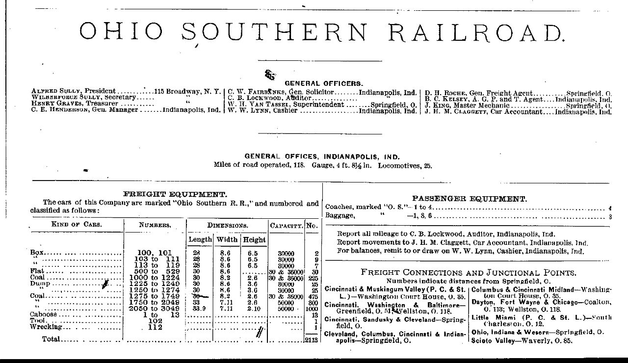 ORER Listing for Ohio Southern August 1888 ORER info courtesy Mark Plank